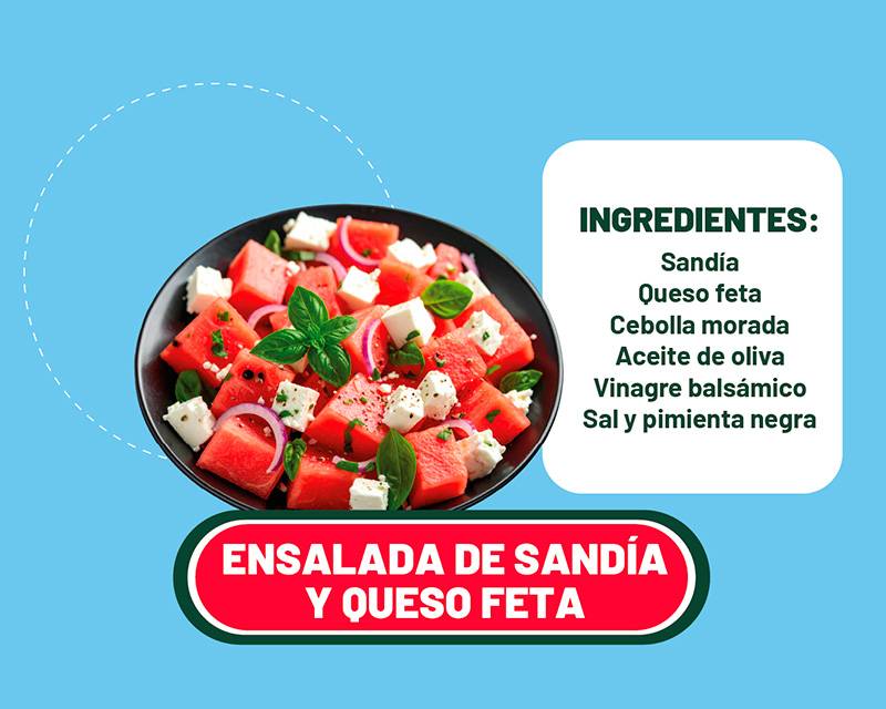 - Queso feta: Aproximadamente 200 gramos, desmenuzado. Su sabor salado y textura cremosa contrastarán perfectamente con la dulzura de la sandía.