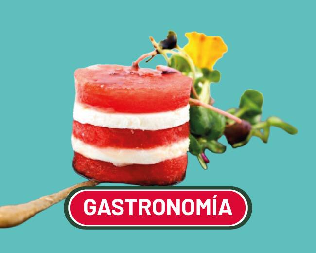 Montar dos milhojas alternando capas de sandía, jamón, queso y lechuga. Aliñar ligeramente cada capa con un poco de aceite, sal y pimienta negra recién molida. Coronar pinchando un palillo o brocheta, para ayudar a mantener firme la estructura, y terminar con un poco más de aceite y pimienta.